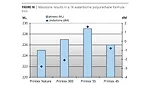 Storage stability tests were conducted on XPB 430 powder and the paste based on XPB 430 after storage at 40 °C (104 °F) for four weeks. No visual or measurable change in the quality could be detected with the dry dispersion powder or the paste. Final coatings with a carbon black concentration of 1.5% (typical for automotive) were prepared using a commercially available 30% PU dispersion (Alberdingk®U710, Alberdingk & Boley GmbH). The coatings were applied on glass plates (120 µm wet), flash-off for 15 min and force dried at 80 °C (175 °F) for 30 min. The coloristic and appearance results are shown in Figures 12 and 13 (p. 28 and 29). All of the coatings provided the highest level of jetness (MY of 325 to 330), a strong bluish undertone, high gloss and low haze. No change in the coloristic properties was obtained after storage, evidence of perfect stabilization of the carbon black pigment in the preparation as well in the paste and final coating.