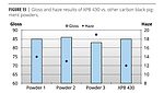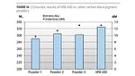 Coloristic performance of the new pigment more closely resembled that of traditional carbon black pigment in the alkyd/melamine formulation, both in jetness and undertone. However, the traditional carbon black pigments did display higher tint strength in this formulation (Figures 8 and 9, p. 26).