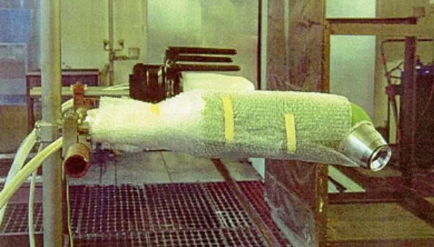 Picture 1, shows a bell in position in a paint booth. As in the example provided above, this bell was operating in an 86 °F, 65% RH environment with a dew point of 73.4 °F.