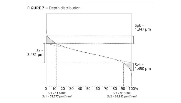 A graphical representation of the depth distribution can also be seen in the bearing ratio curve (Figure 7). This is an interactive feature within the software that allows the user to view distributions and percentages at varying depths.