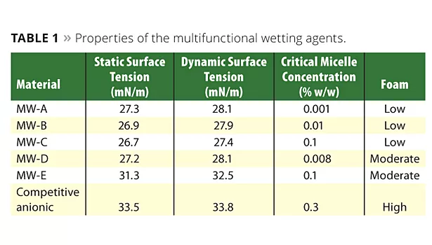 • MW-C performed best as a low-energy substrate wetter when using clean substrates. MW-A, with the lowest CMC, was among the best when wetting unprepared substrates.