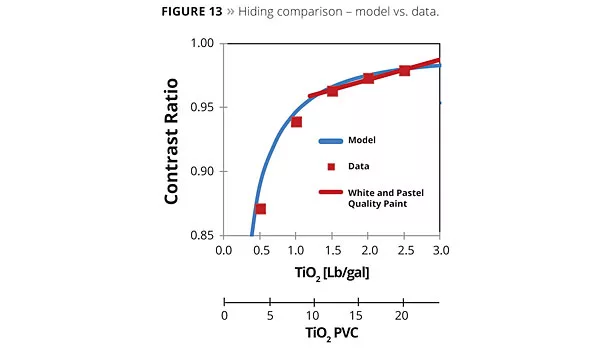 To show how contrast ratio is affected by basic formulating and application variables we will use models2 that predict the scattering of paints and combine that with well-established theory3 to estimate the contrast ratio of various paints. The results are shown in graphical form to aid in visualizing the magnitude of the individual effects.
