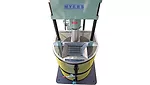 First, a smaller container will not be as tall as the vessel that is intended to be used with the machine. When the proper size tank is used, the shaft guard is in contact with the tank cover at the top of the vessel, such that there is no possibility of operator contact with the rapidly rotating, high-torque shaft. If a lower-capacity vessel is used, said vessel will be shorter, and the shaft guard will not fully cover the shaft. To further exacerbate this safety issue, the exposed portion of the shaft is close to arm and hand height, and at a level where one would commonly make additions to the batch, posing a critical safety concern. A shaft guard fitting the height of the mixing vessel, in conjunction with a tank cover, is advised by OSHA. If a smaller tank must be used, a telescoping shaft guard can be employed; this is a suitable setup for accommodating limited lift applications.