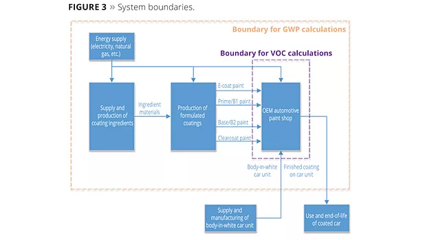 For VOC analysis, the scope is limited to the paint shop only (i.e., gate-to-gate). This is due to the desire to compare paint shop VOC emissions to potential regulatory limits.
