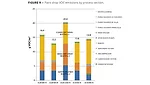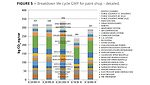Figures 5 and 6 show a breakdown of the paint shop GWP impact by process section. The production and supply of paint materials to the paint shop is not shown in these figures in order to focus solely on paint shop operations. Figure 5 is a breakdown of the 28 process sections provided by IHS. Figure 6 presents the GWP impact for each scenario rolled up into five process categories and is more consistent with how Ford presented their GHG results.