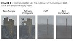 The result of the salt spray exposure demonstrates the good performance properties when using CMP compared with magnesium phosphate. Even the protective effect of the reference sample that contained zinc could be outperformed using CMP. Magnesium phosphate exhibited serious problems regarding adhesion, rusting and blistering.
