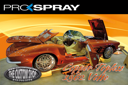 MASSILLON, OH – Pro-Spray Automotive Finishes teamed up with The Custom Shop for its SEMA 2014 exhibit. The 1962 Chevrolet Corvette Roadster, known as the Copper Topless, was on display at the Pro-Spray booth.