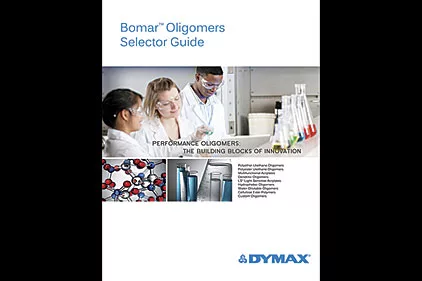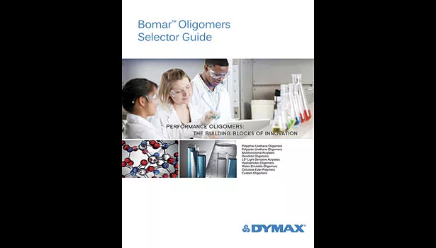 The Bomarâ„¢ Oligomers Selector Guide provides information to help simplify the product selection process. Detailed reference charts and tables include special features of each Bomar oligomer as well as their properties, such as viscosity and hardness. It also describes the additional types of light-curable products available, as well as compatible dispensing and light-curing systems. Visit www.dymax-oc.com.